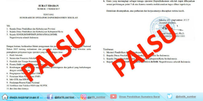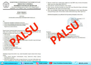Demikian informasi mengenai himbauan kepada masyarakat luas ataupun sebuah instansi seperti sekolahan, yayasan atau sejenisnya tentang surat palsu yang beredar dan mengatas namakan Kementrian Pendidikan dan Kebudayaan. Semoga informasi tadi dapat berguna dan bermanfaat.