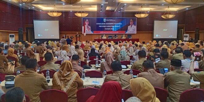 Pendidikan di Sumatera Barat sudah melaksanakan Asesmen Nasional  sejak tahun 2021 dan tahun ini memasuki tahun keempat pelaksanaan Asesmen Nasional  dalam pelaksanaan ya pasti banyak yang harus dievaluasi oleh dinas Pendidikan Sumatera Barat salah satunya masih rendahnya literasi dan numerasi untuk itu dinas Pendidikan Sumatera Barat menggelar sosialisasi Asesmen Nasional  tahun 2024 untuk menyamakan persepsi dan pemahaman kepala dinas Pendidikan kabupaten kota kepala sekolah seluruh tingkatan satuan Pendidikan dan delapan cabdin di Sumatera Barat.