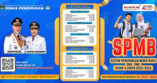 Sesuai Surat Edaran No.420./2125/PSMA/SLB-2025 kepala Dinas Pendidikan Provinsi Sumatera Barat tanggal 10 Juli 2025 membuka tahap akhir Sistem Penerimaan Murid Baru (SPMB) 2025 pemenuhan daya tampung kuota SMA se Sumatera Barat yang akan di buka pada tanggal 16 sampai dengan 17 Juli 2025 dibuka dari jam 08.00 pagi sampai 14.00 …