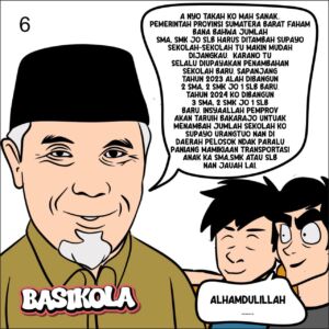 Mulai hari ko, gen z Sumbar sadonyo bisa menikmati komik BASIKOLA ko di akun iko. Jan lupo kabarkan kawan-kawan yo. Follow, like dan komen jikok ado yang ingin diutarakan. Semoga iko akan mampadek jarak antaro pemerintah provinsi dengan kalangan Gen Z sadonyo.