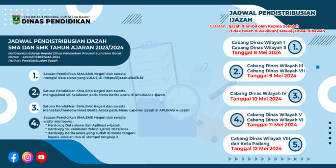JADWAL PENDISTRIBUSIAN IJAZAH SMA dan SMK Tahun ajaran 2023/2024 Senin, 6 Mei 2024 Halaman Utama Tinggalkan komentar 9,060 Kunjungan Bagikan Facebook Twitter LinkedIn Pinterest Unduh Surat Edaran : Download jadwal pendistribusian ijazah