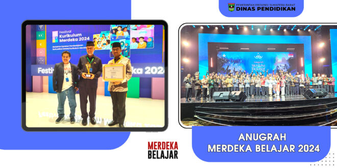 Jumat 5 Juli 2024, Plenary Hall Jakarta Convention Center (JCC) Senayan Gubernur Provinsi Sumatera Barat (H. Mahyeldi Ansharullah, S.P), didamping Kepala Dinas Pendidikan Pendidikan Provinsi Sumatera Barat (Drs. Barlius MM) menerima Augerah Merdeka Belajar oleh Mendikbudristek Nadiem Anwar Makarim, Apresiasi Komitmen dan Aksi Nyata Pemerintah Daerah dalam Transformasi Pendidikan di Indonesia
