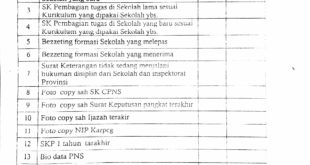 Berikut merupakan persyaratan awal untuk pindah guru-guru SMA/SMK di lingkungan pemerintahan Provinsi Sumatera Barat, dapat didownload di link berikut : [Persyaratan pindah]
